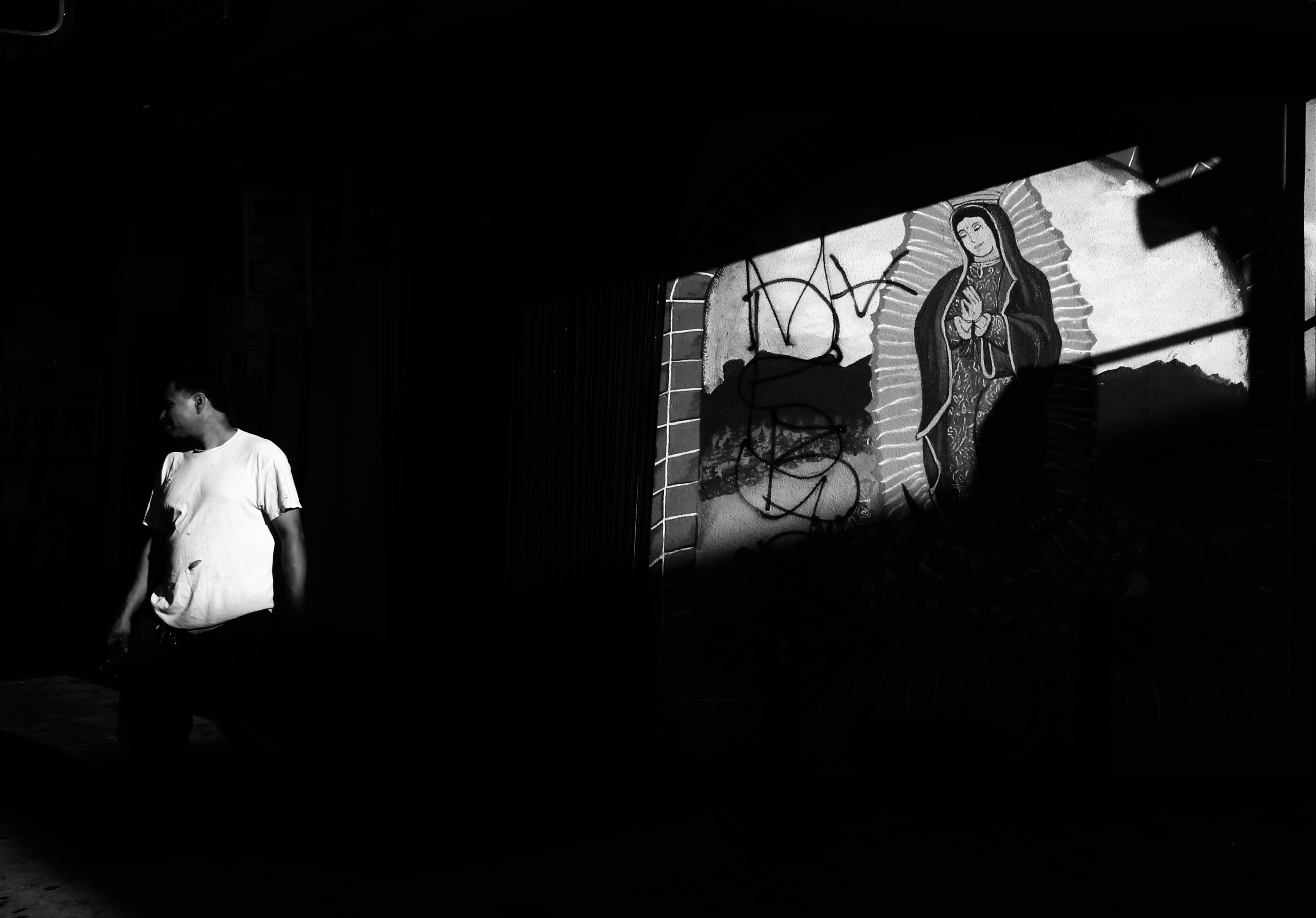 His place is filled with soaps to Keep Hate Away, and aerosol sprays for love, and candles, Santa Muerte, San Simon, Jesus Malverde, and every kind of icon to ward off evil and welcome good luck and happiness. A lot of it’s made in China.